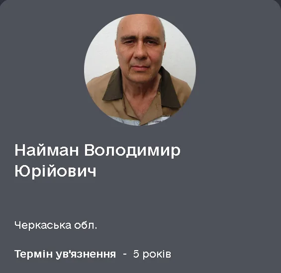 Володимир Найман – п’ять років ув’язнення